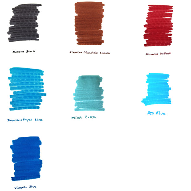 - 7 beautiful fountain pen ink samples
