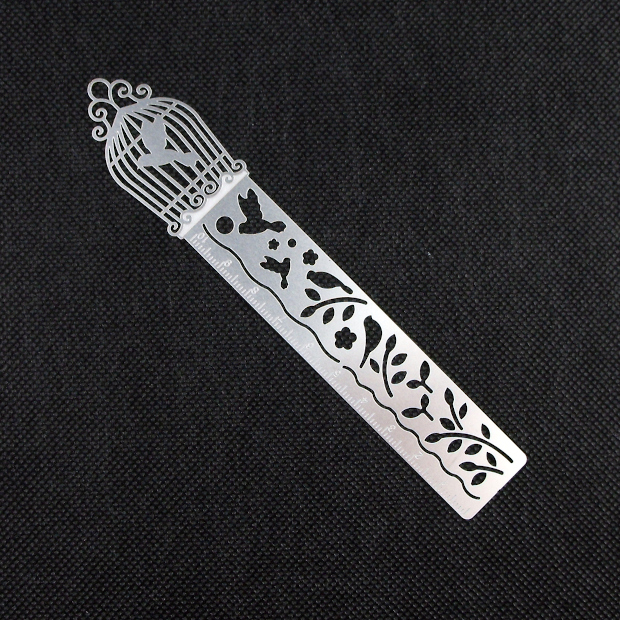 This bookmark features a beautiful and unique Bird Cage design. Its elegance speaks on its own. This page ruler is also a great gift for any book aficionado and kids.